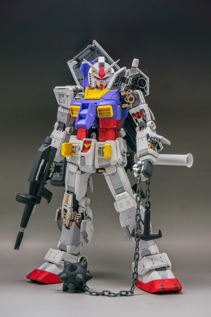 Perfect Grade category Gundam, as seen in "Mobile Suit Gundam" cartoon series. The shield and beam rifle are to heavy for the arms and just fall downwards and also this is just a pg rx-78-2 with special coating. The PG RX-78-2 Gundam model kit that Bandai has produced is truly amazing.