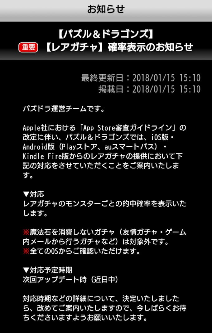 モンスト や パズドラ もついに詳細確率を発表 Appleの規約変更の影響